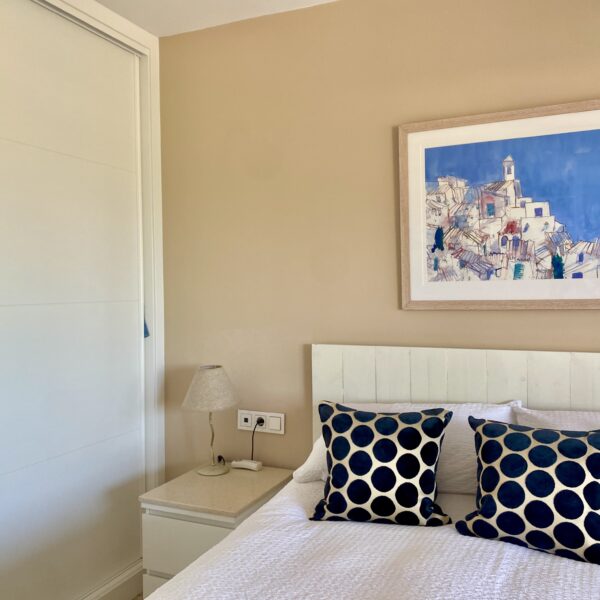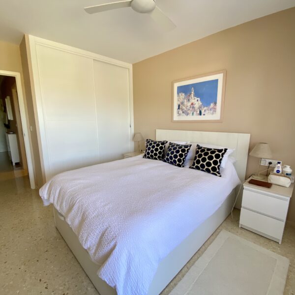 Un dormitorio muy espacioso con gran armario forrado y dividido con acceso a la terraza