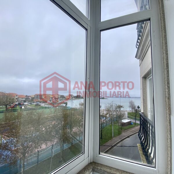 El dormitorio se comunica con un balcón con vistas al mar, cubierto, con ventana al exterior