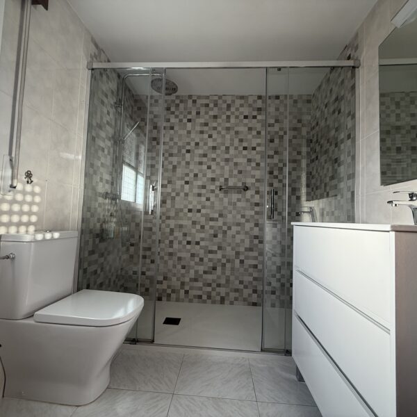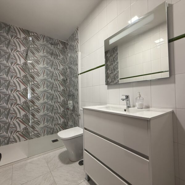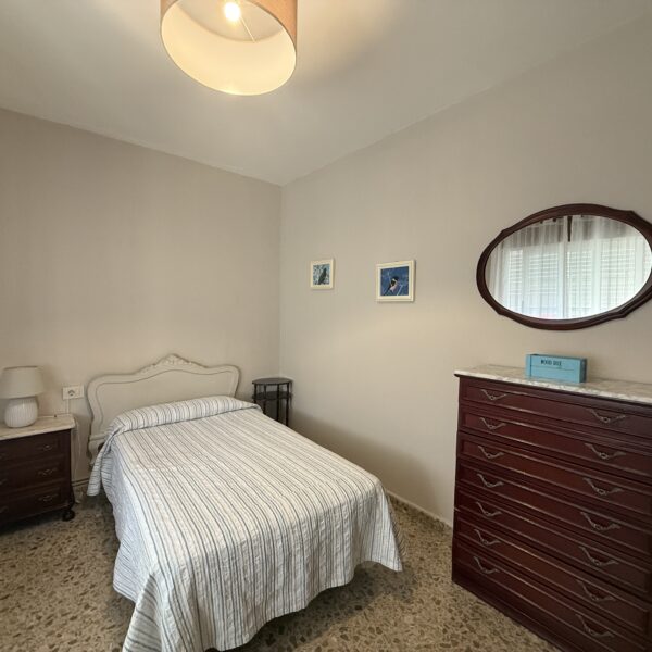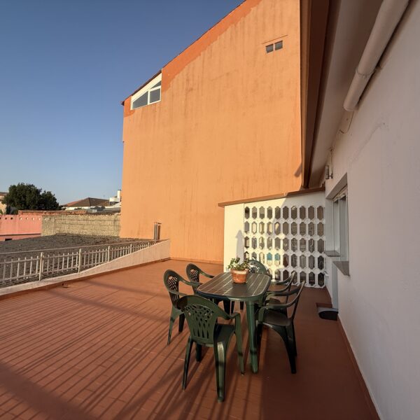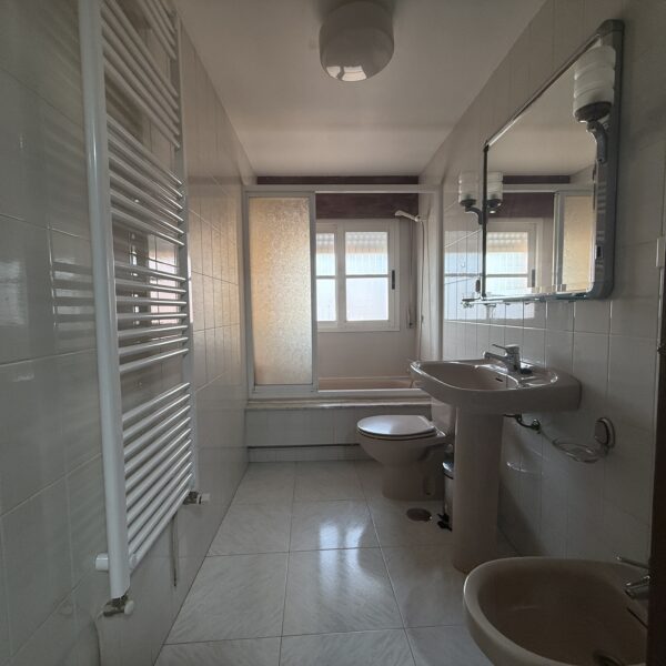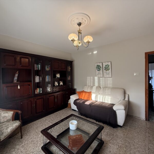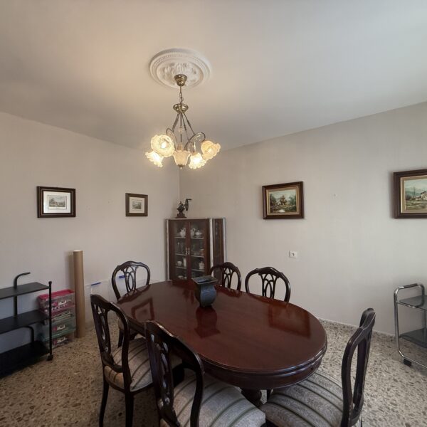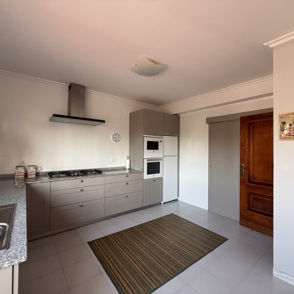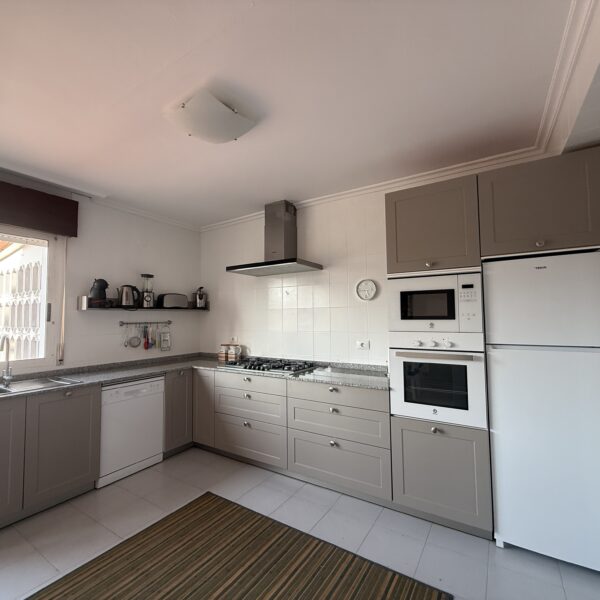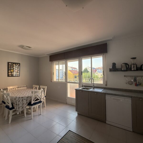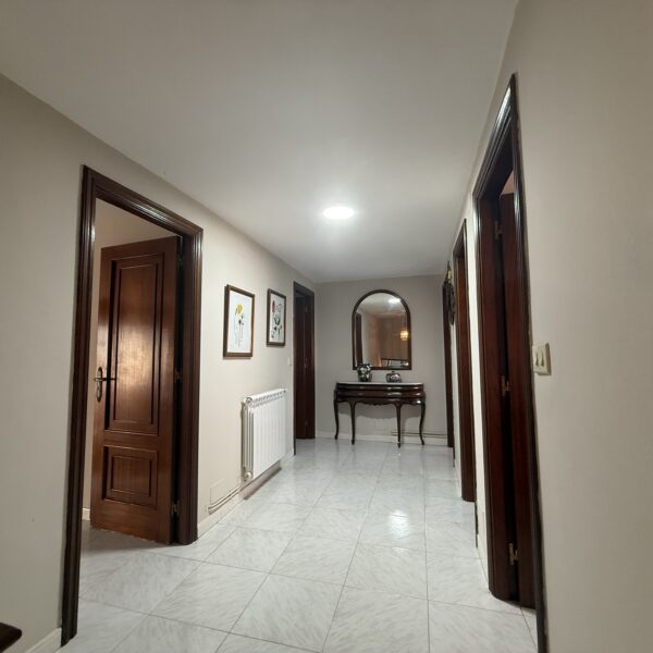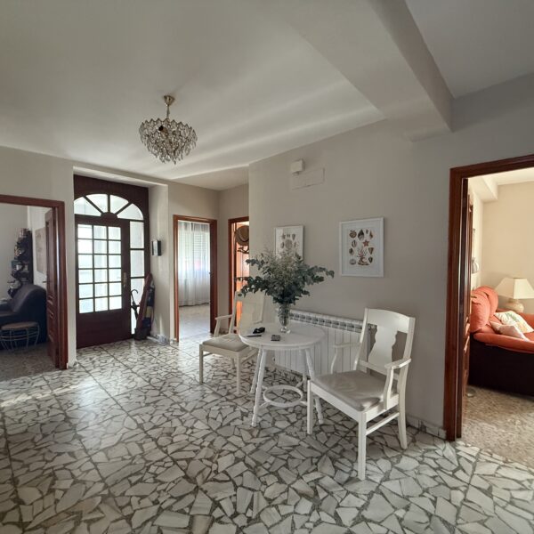 Planta principal con un amplio hall distribuidor, salón, comedor, dos dormitorios, un baño y una gran cocina con acceso a la terraza, donde se encuentra el cuarto de lavandería