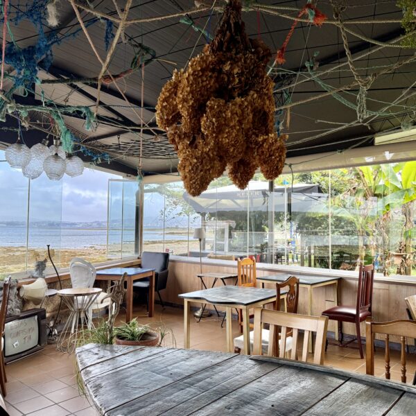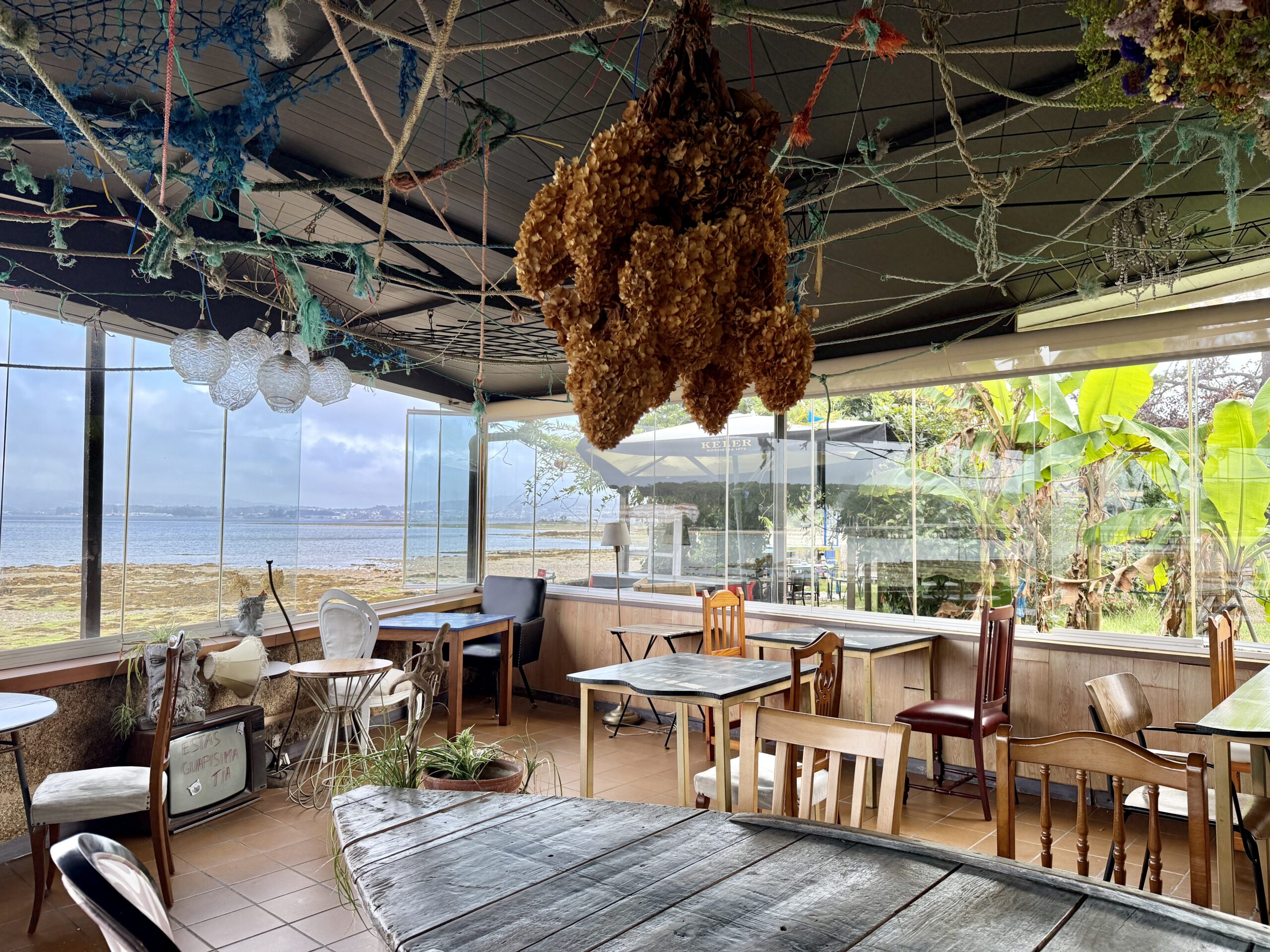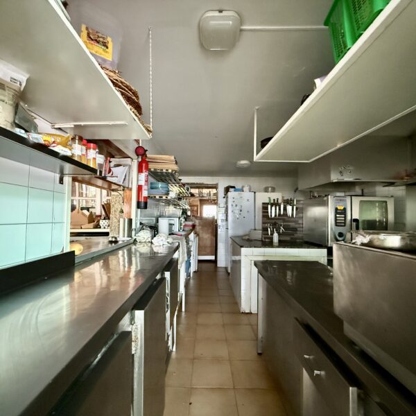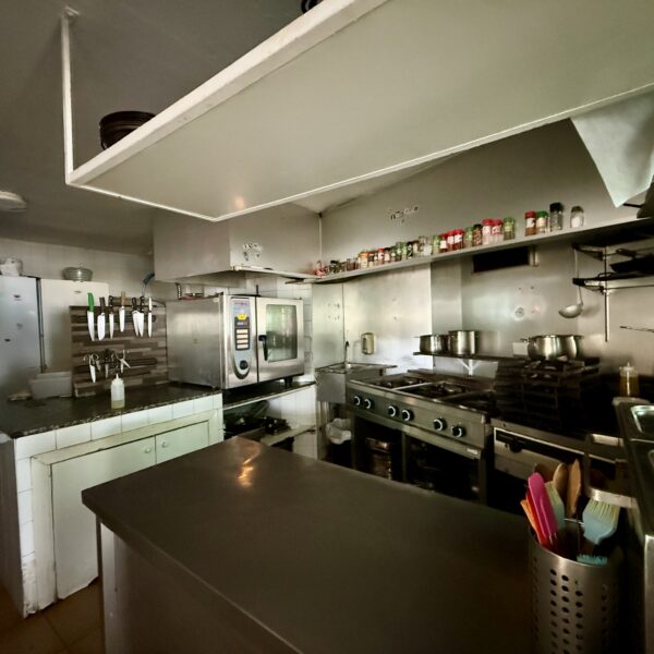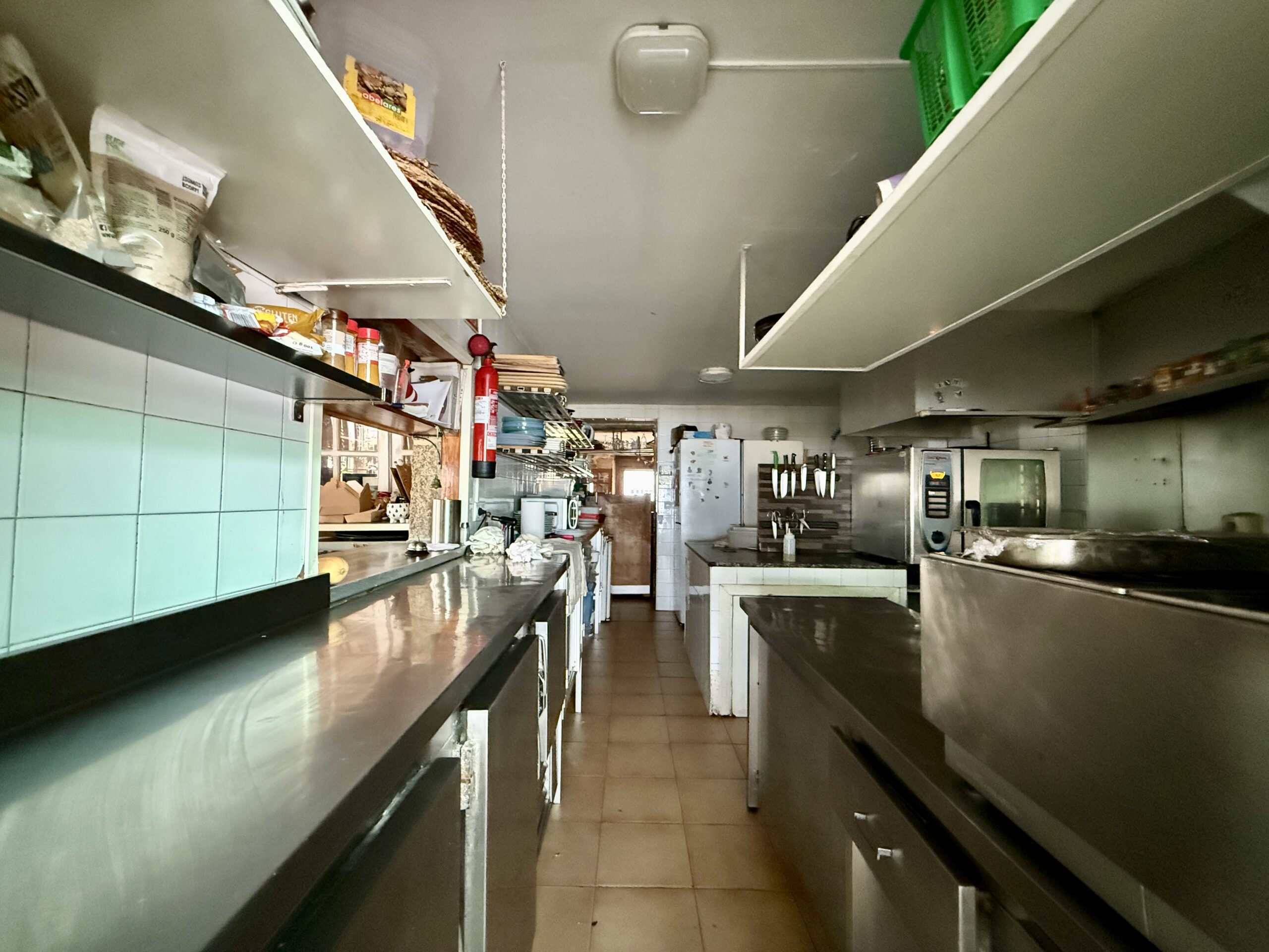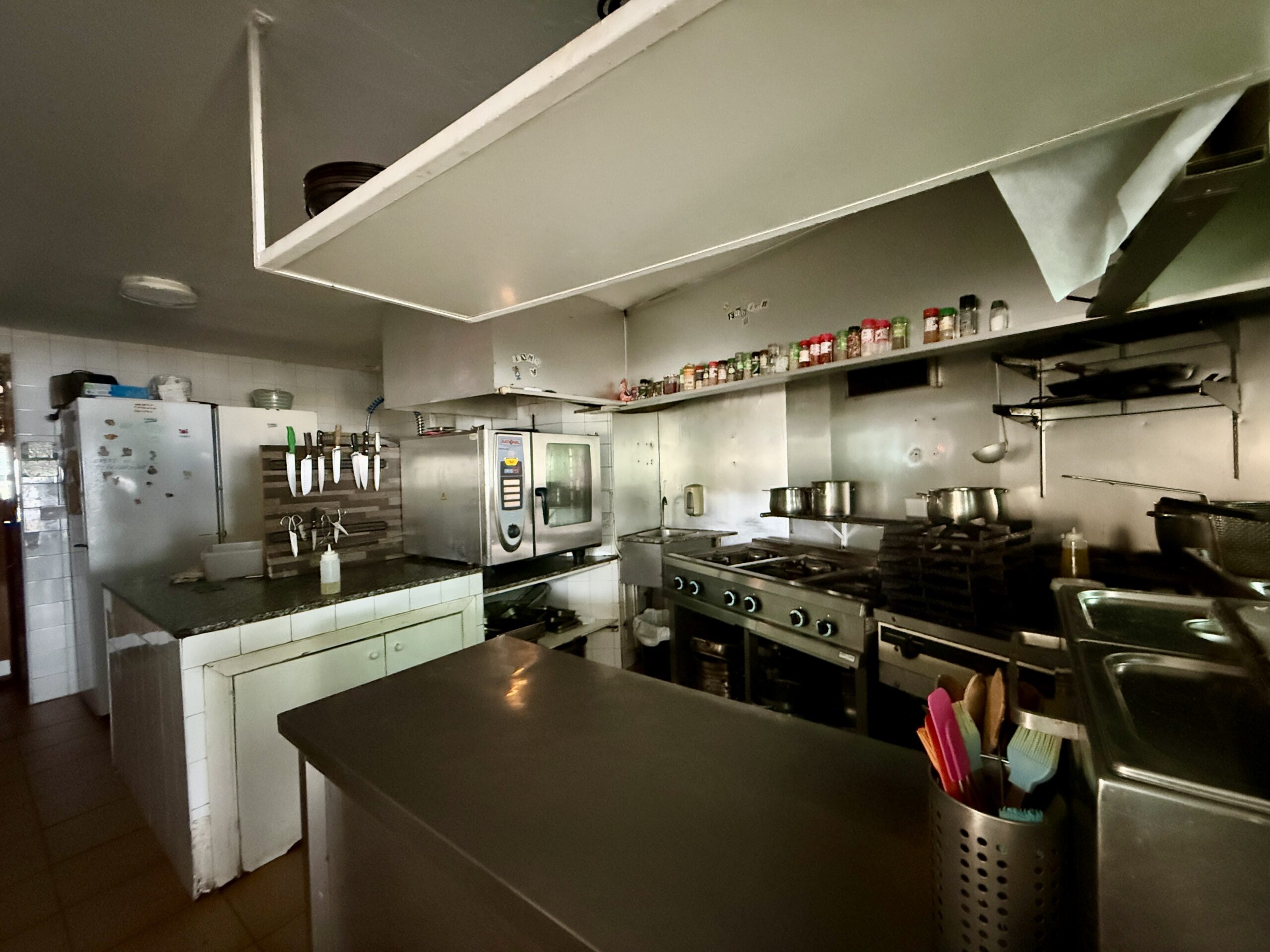 La zona habilitada como restaurante dispone de un amplio sótano como almacén, garaje, zona chill out, así como un espacioso comedor acristalado encima del mar