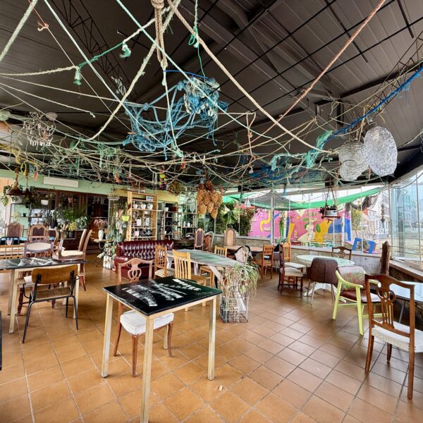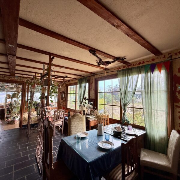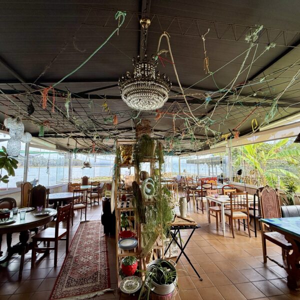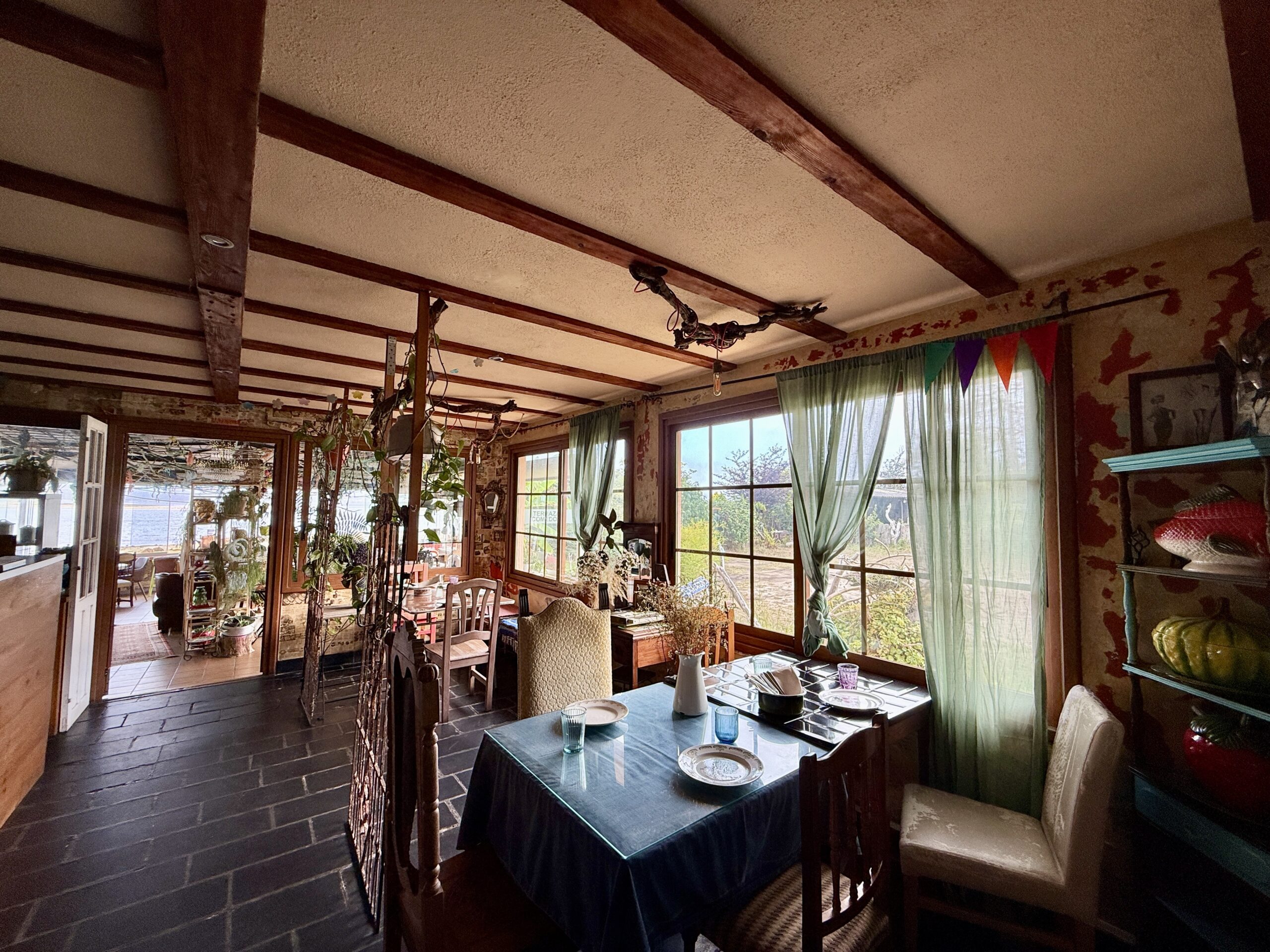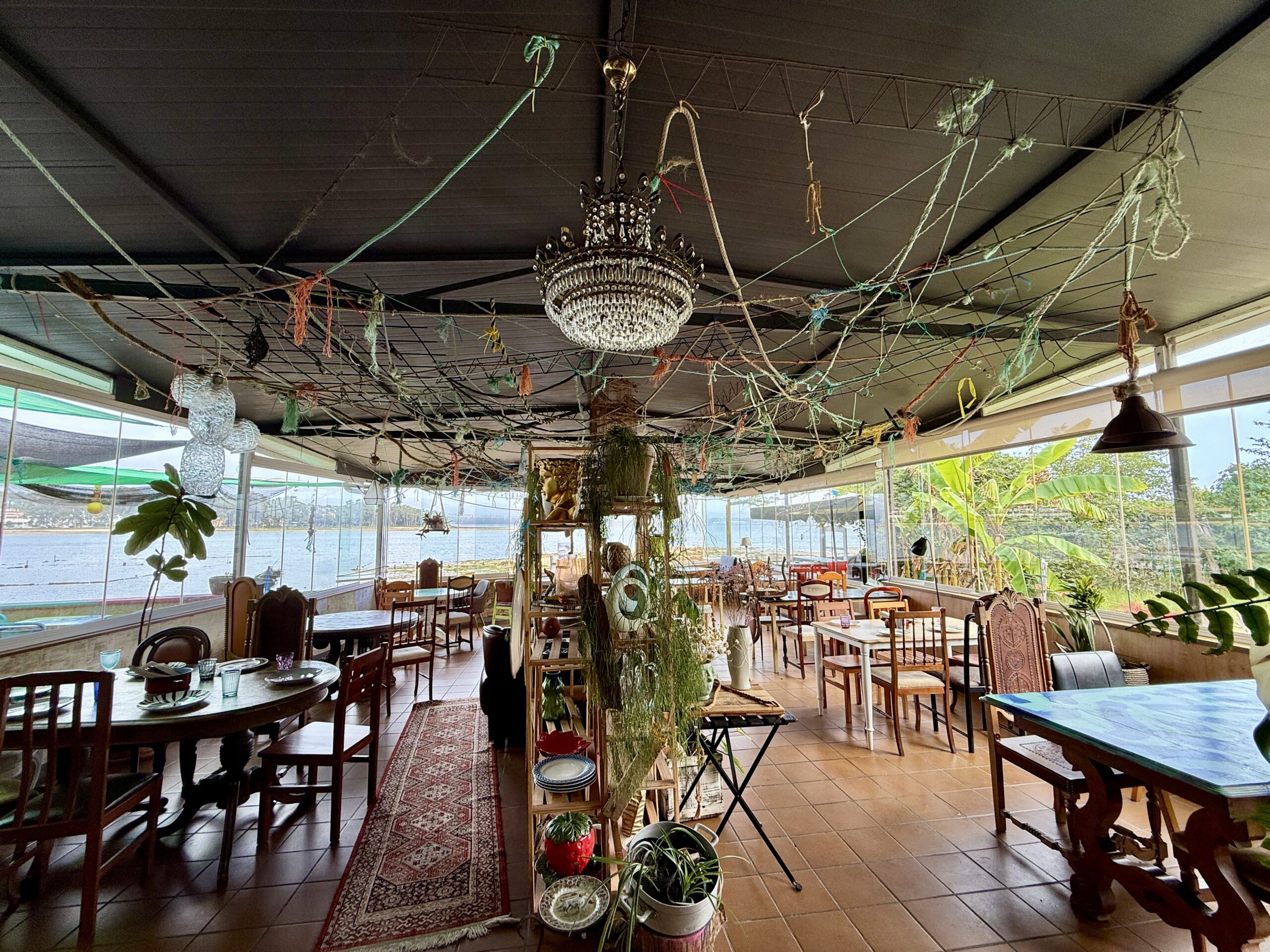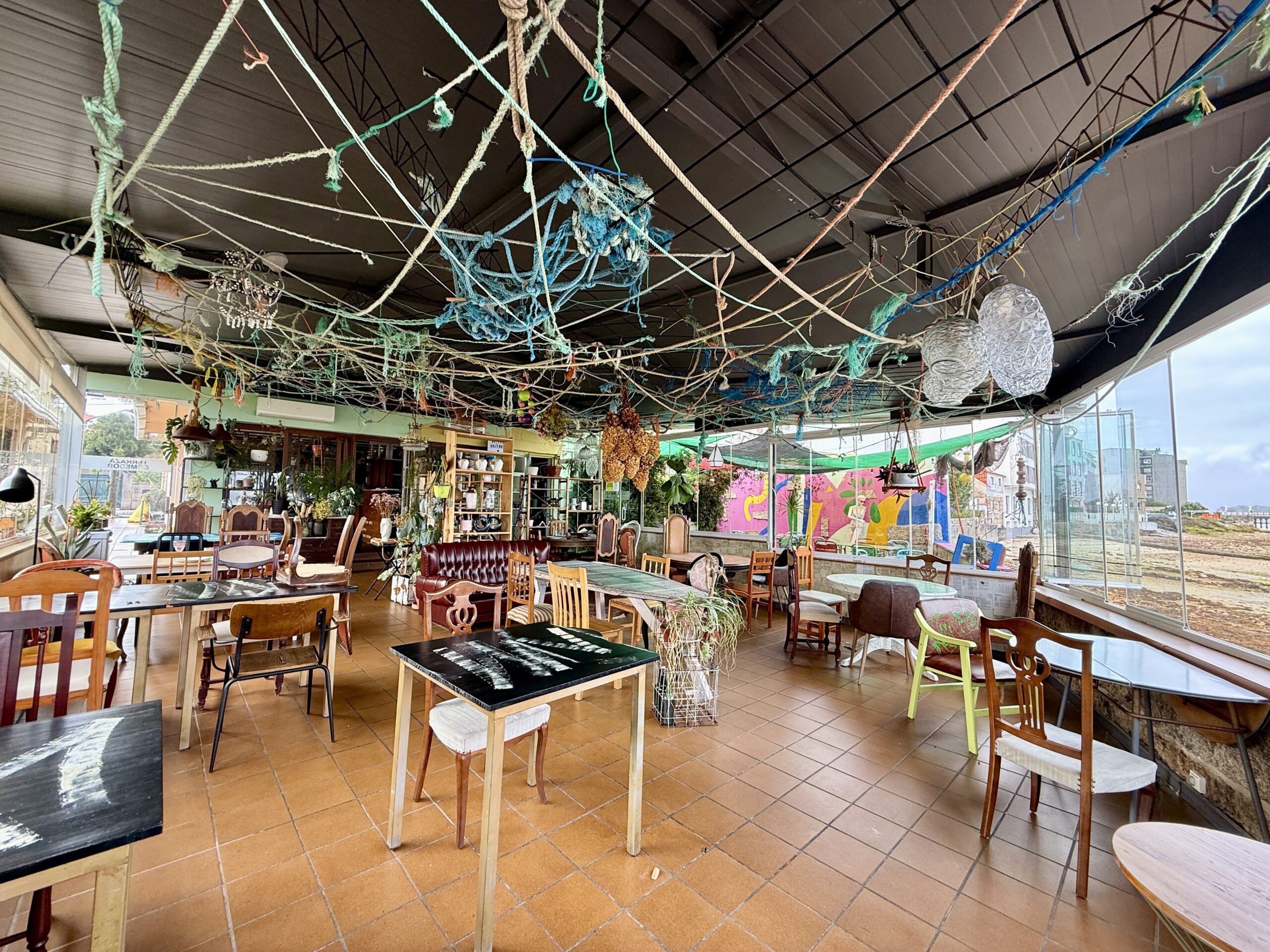 La zona habilitada como restaurante dispone de un amplio sótano como almacén, garaje, zona chill out, así como un espacioso comedor acristalado encima del mar