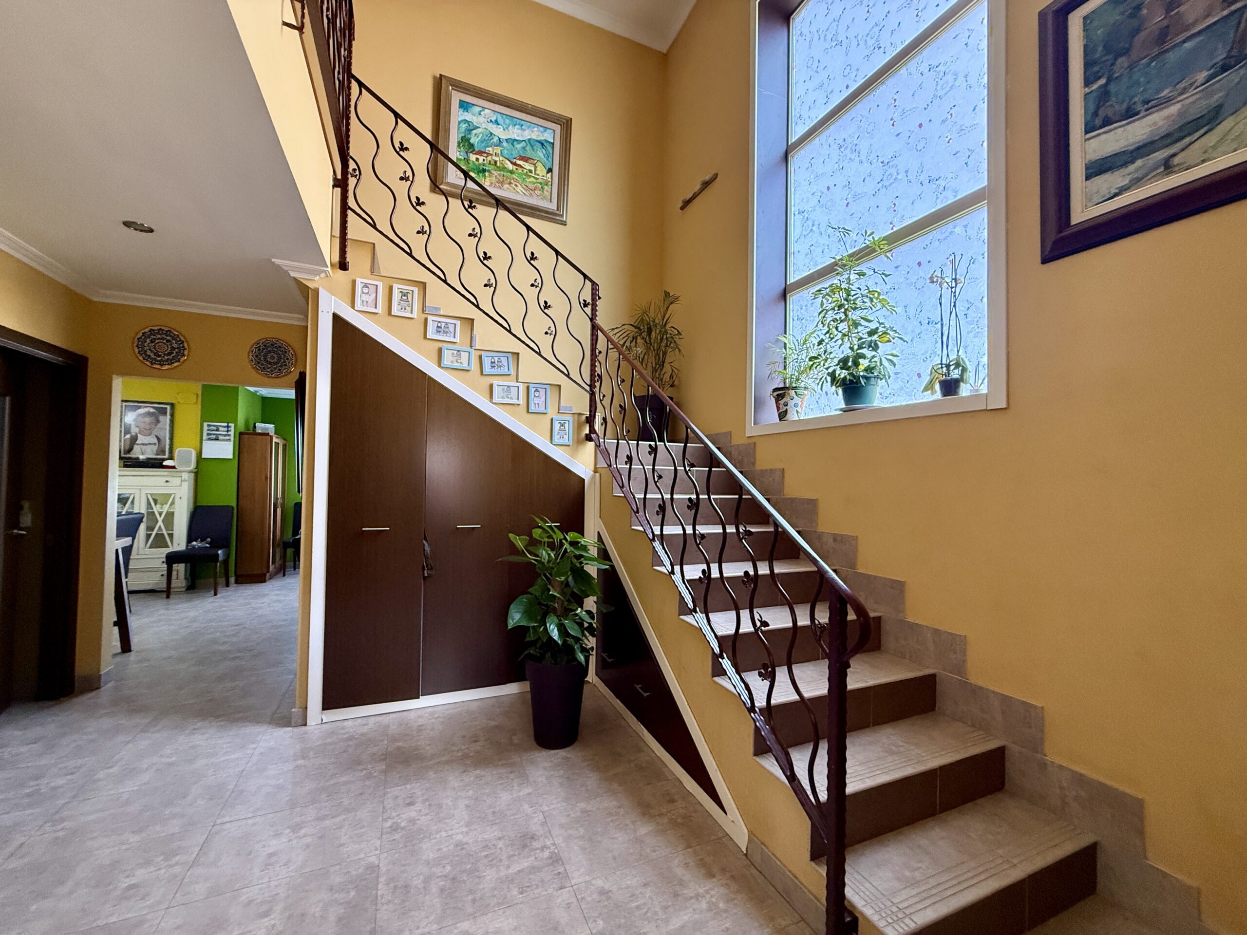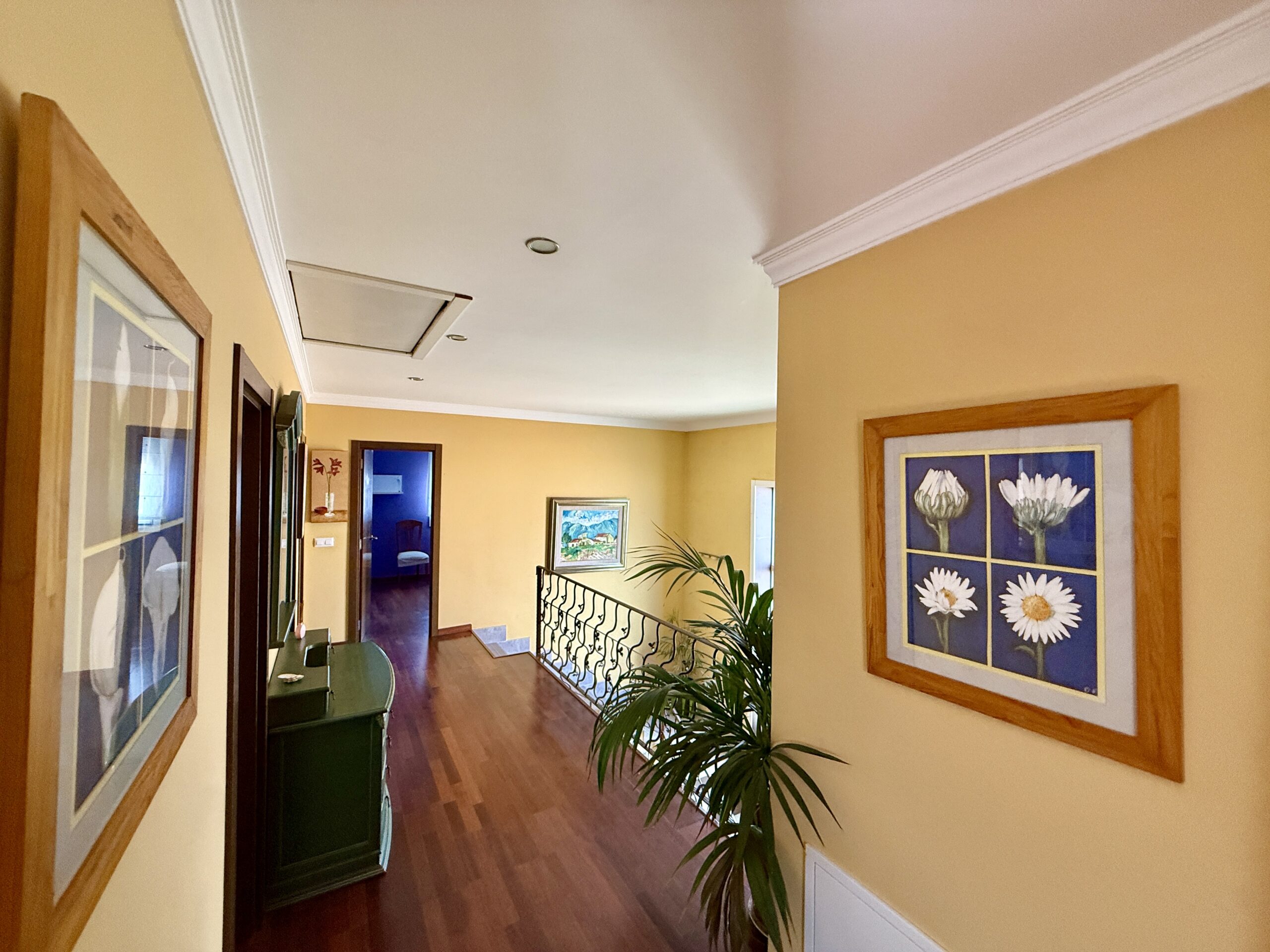 Y planta alta con tres cómodos dormitorios, dos baños y un estudio espacioso y soleado