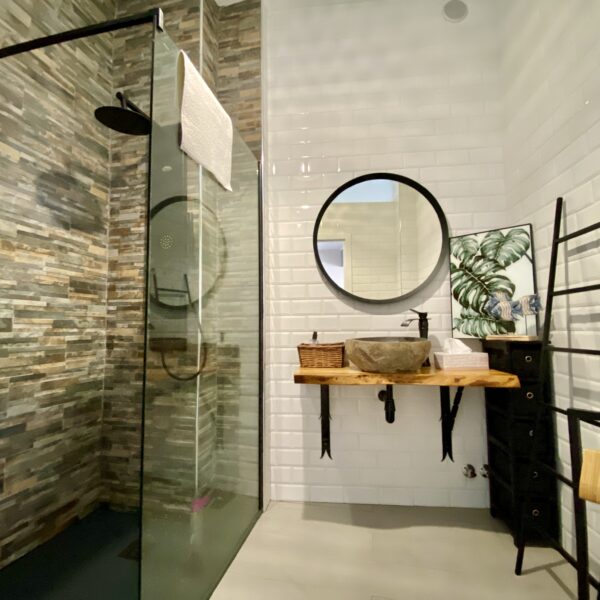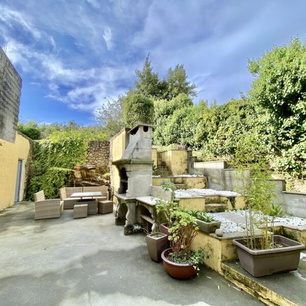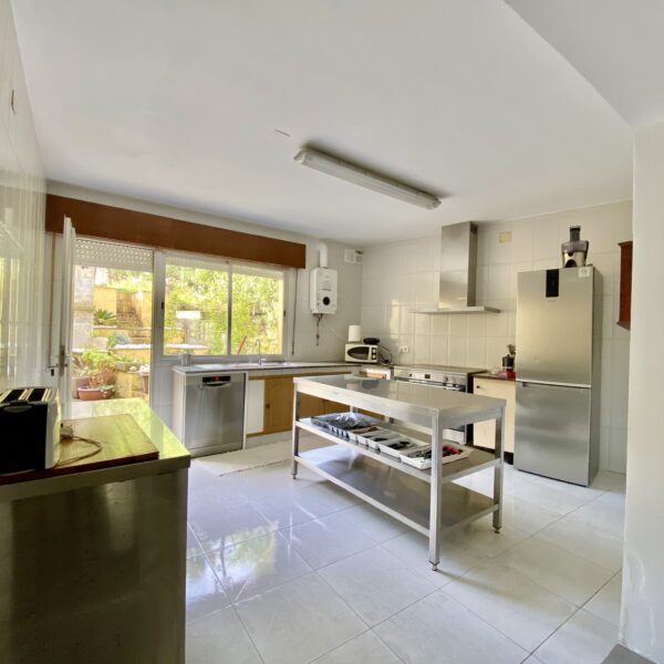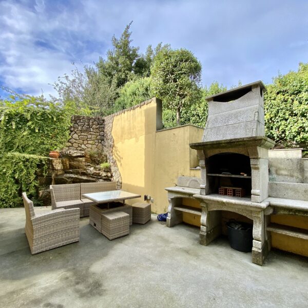 La planta baja tiene acceso a un bonito jardín trasero con barbacoa, zona de recreo y un cuarto de lavandería (se accede también con una entrada independiente desde la calle) Actualmente esta planta está preparada como un gran salón-comedor, cocina equipada y un baño totalmente reformado