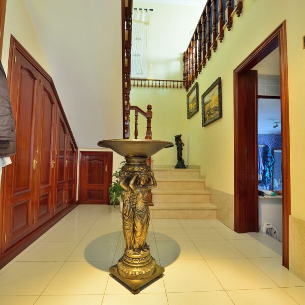 En la planta baja: cocina independiente equipada, sala de juegos,recibidor con acceso a un salón de 36 metros, cuarto de lavandería y un baño