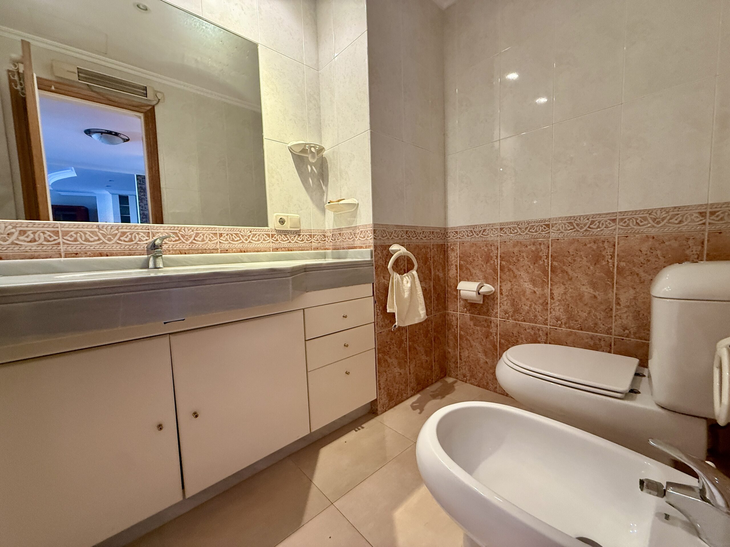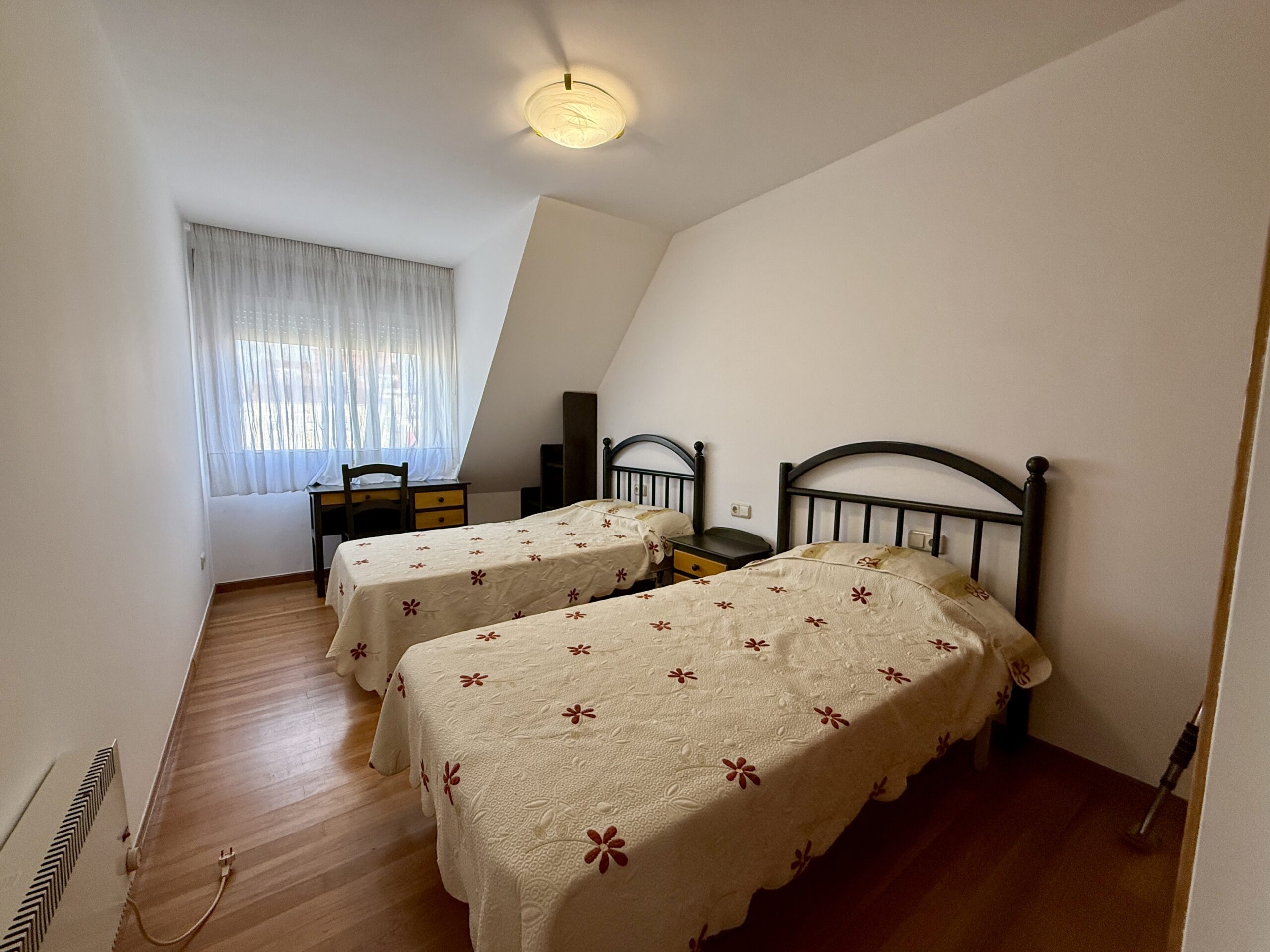 100 metros, con la reforma se anuló un dormitorio y actualmente dispone de dos amplios dormitorios (uno de ellos con pequeña terraza y baño incorporado)