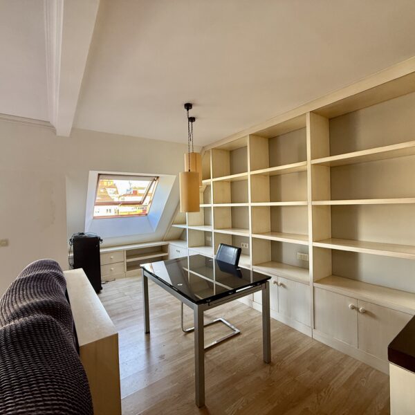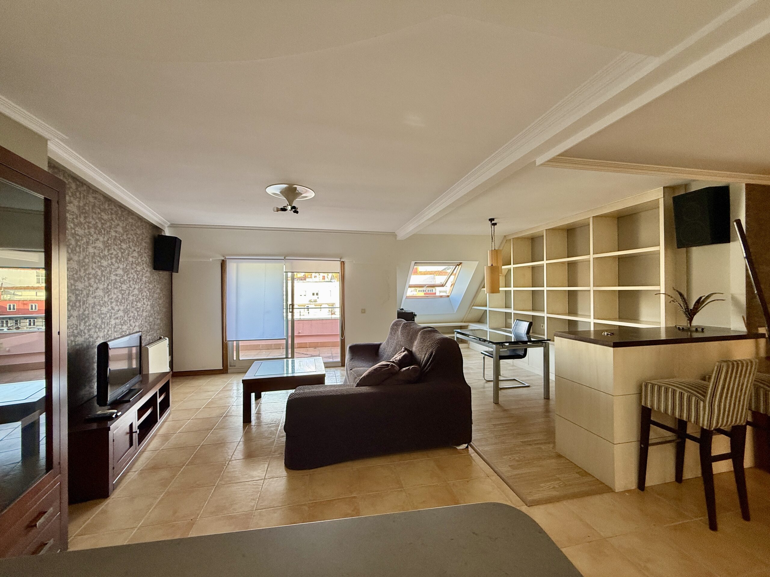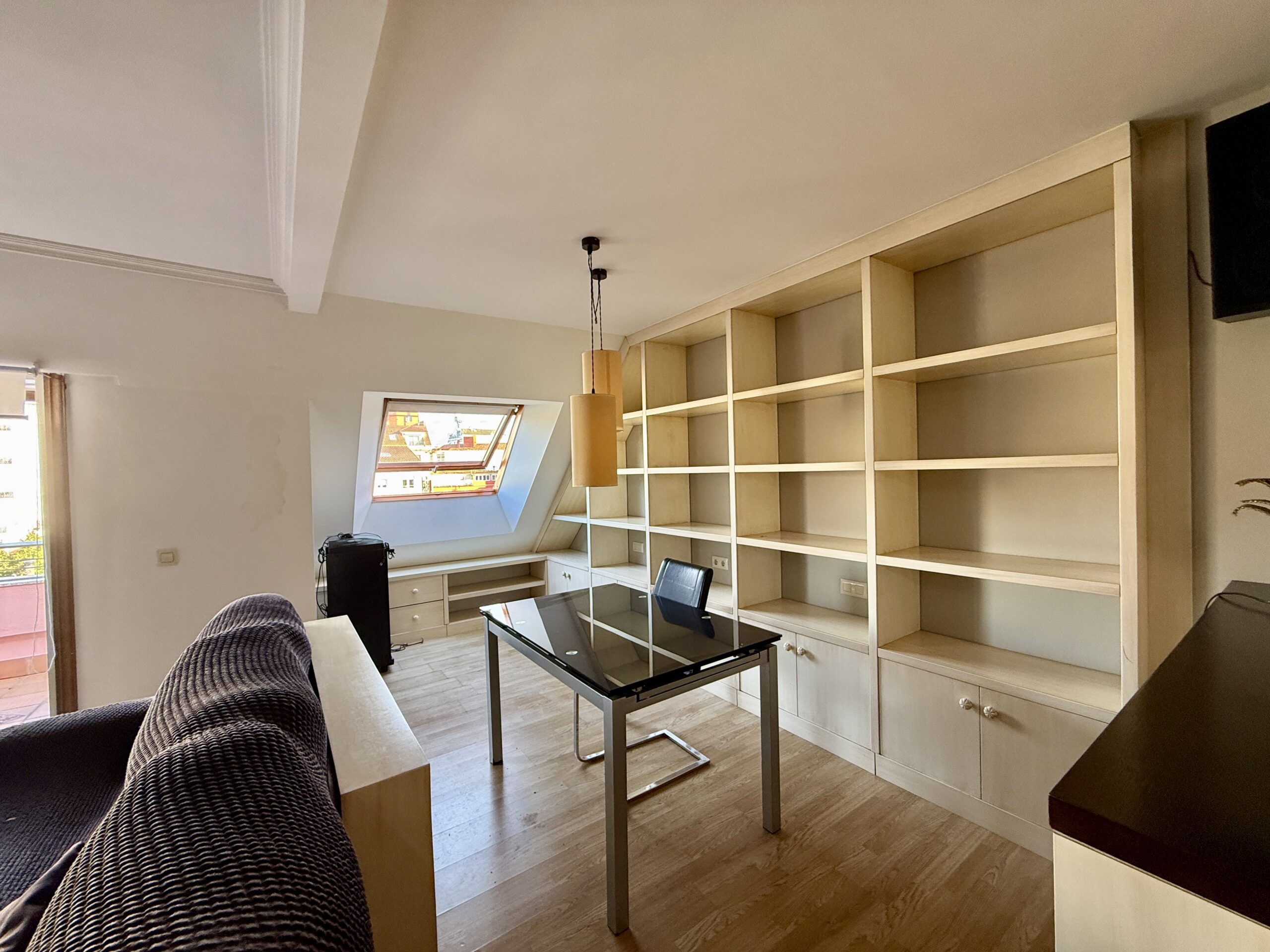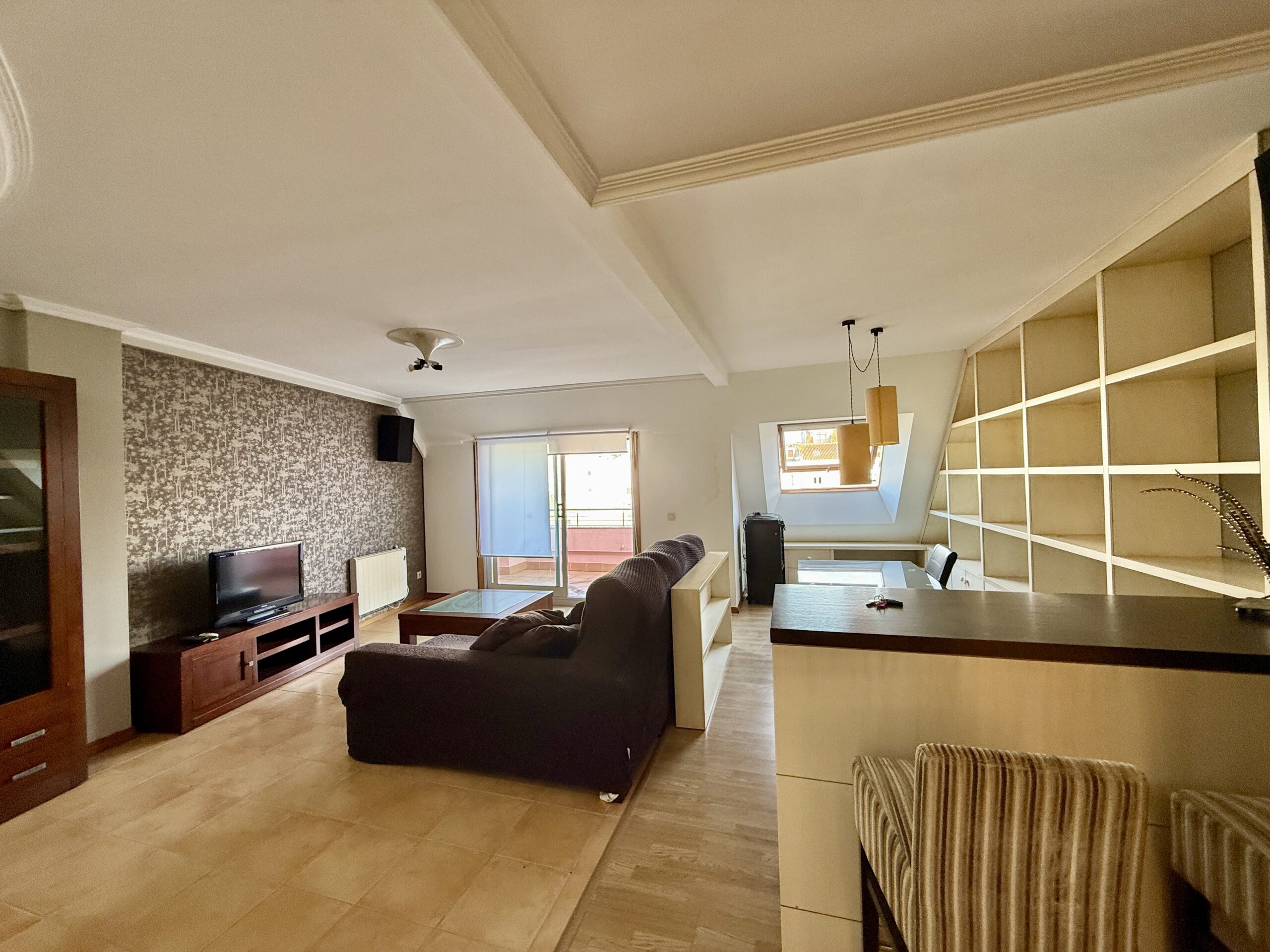 Salón comedor muy amplio con zona de estudio/biblioteca y acceso a la terraza principal