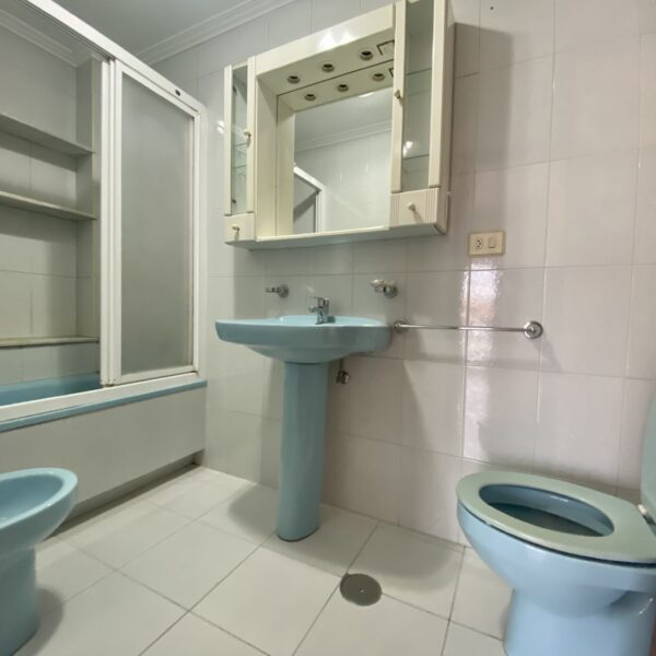 Piso muy amplio de tres dormitorios y tres baños(actualmente uno de ellos se utiliza de despensa pero mantiene las tomas de agua y luz )