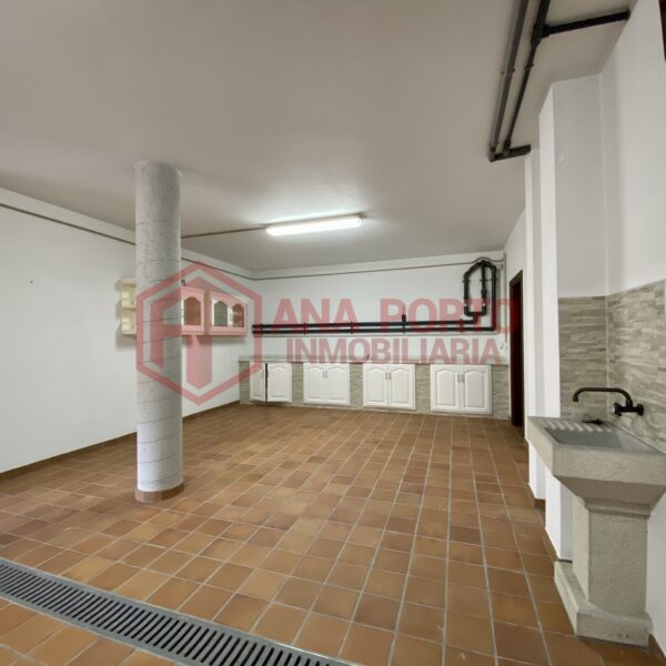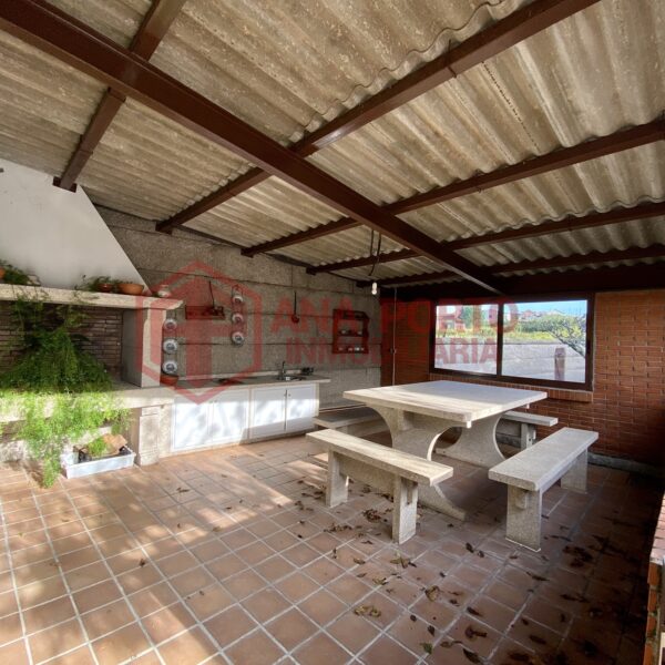 En el exterior pérgola con barbacoa, mesa de piedra con bancos, mesado con fregadero, nevera…