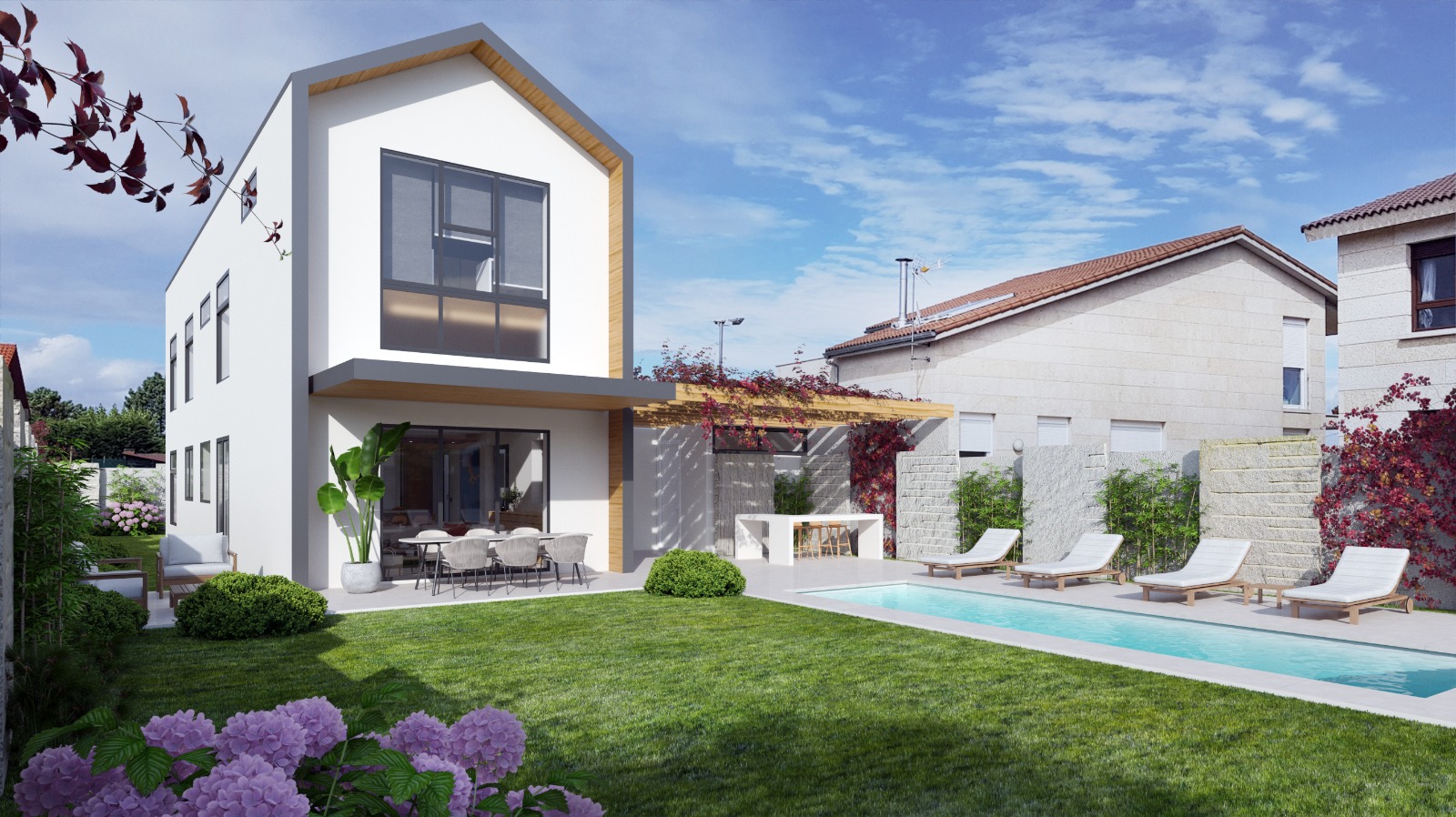 El proyecto es para una vivienda de 180 metros con piscina (posibilidad de modificarse) , tiene orientación sur