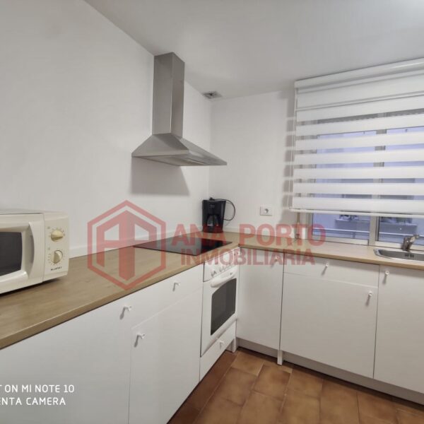 Cocina independiente, amueblada y equipada, con un tendedero anexo donde se encuentra la lavadora