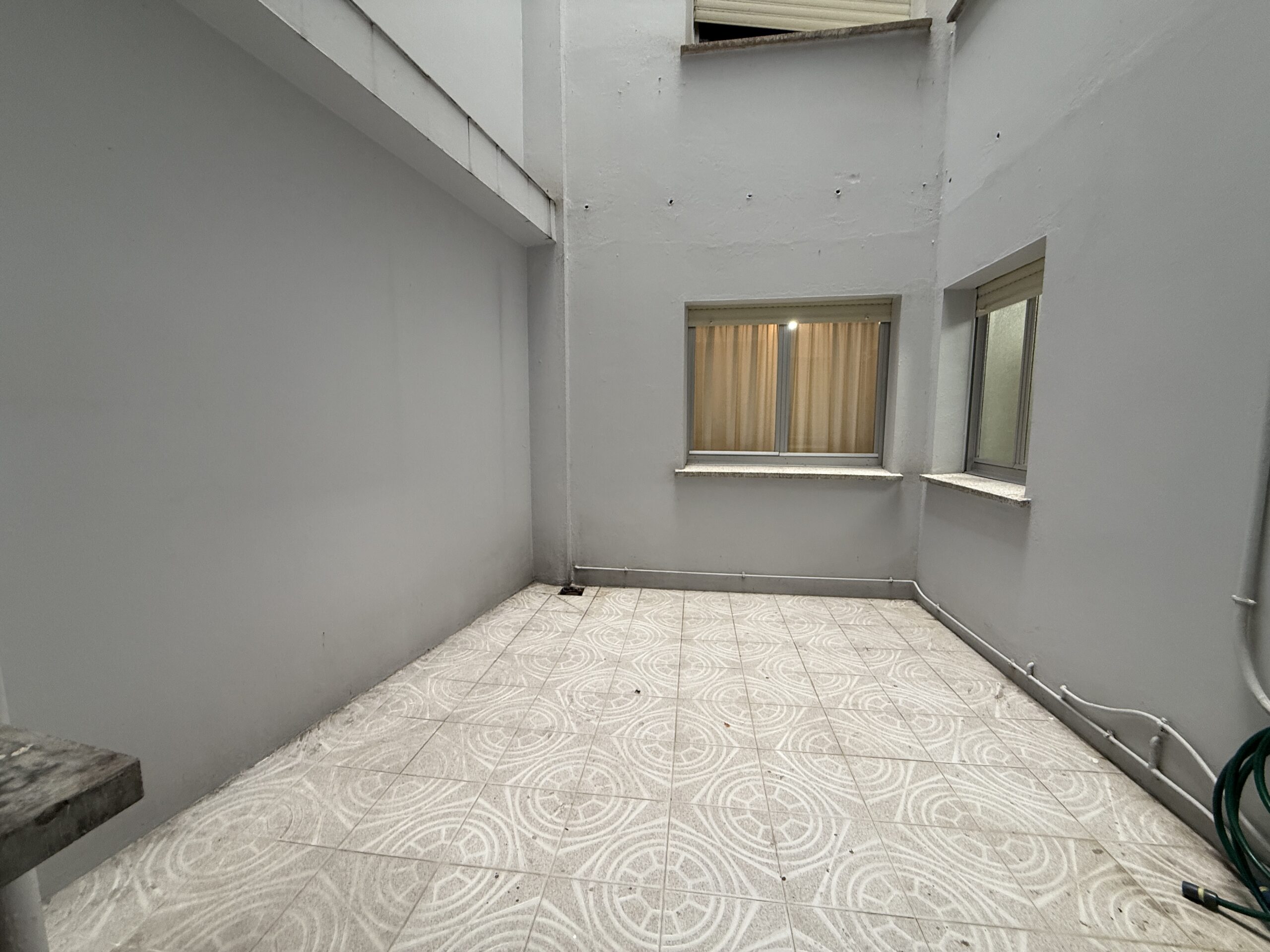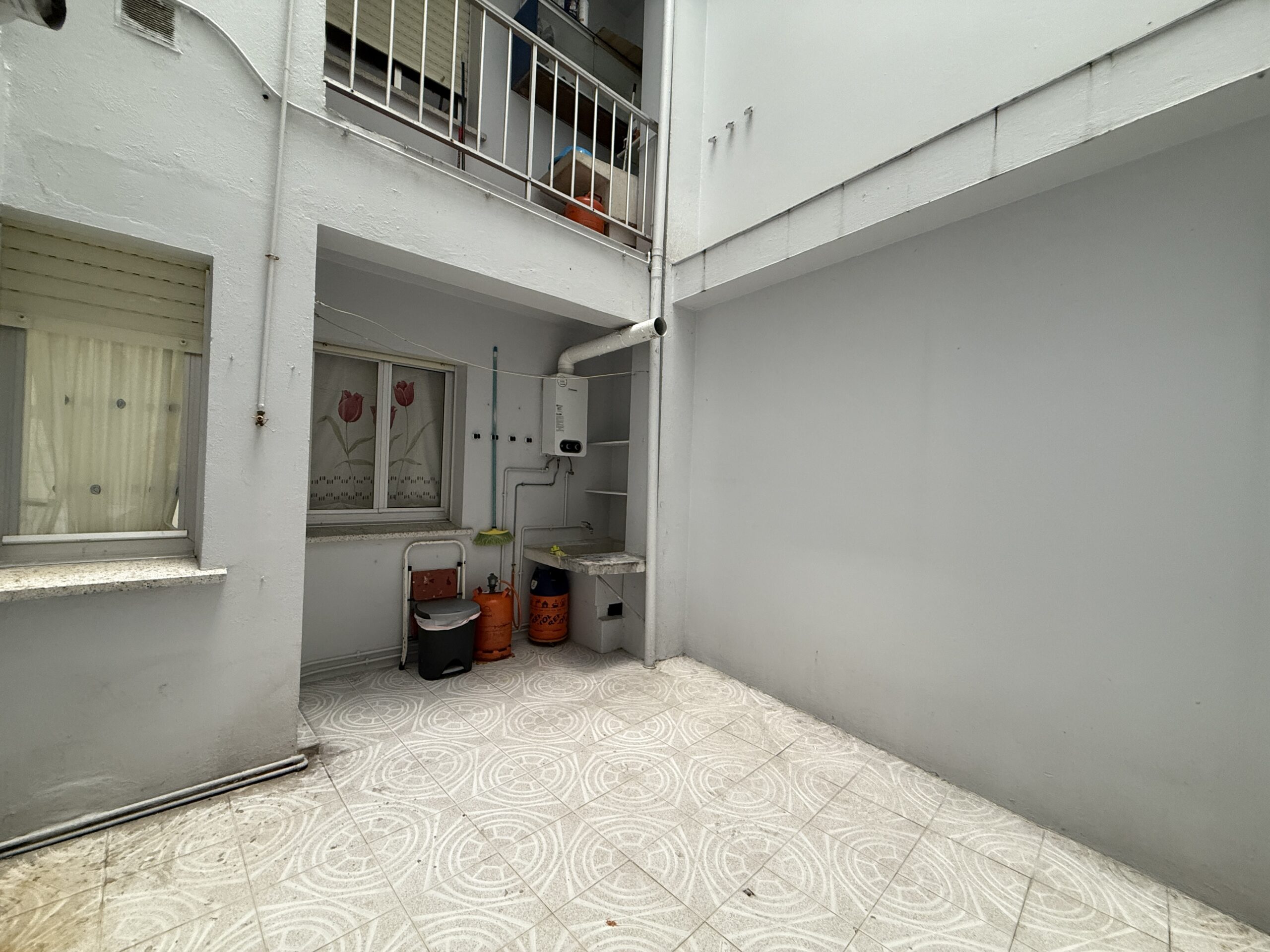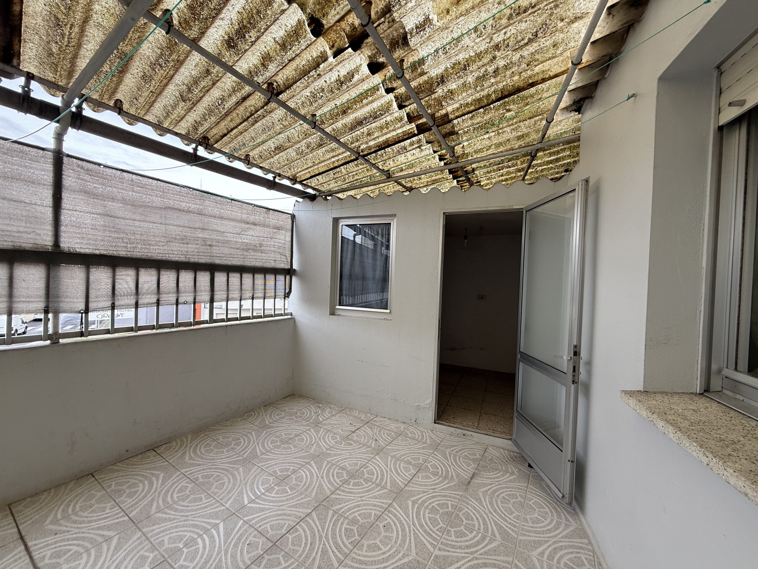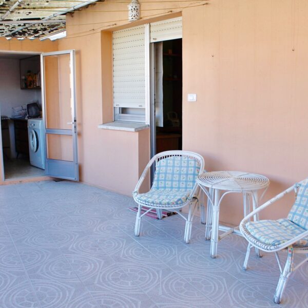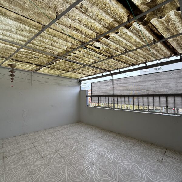 Terraza cubierta en la que hay un cuarto de lavandería