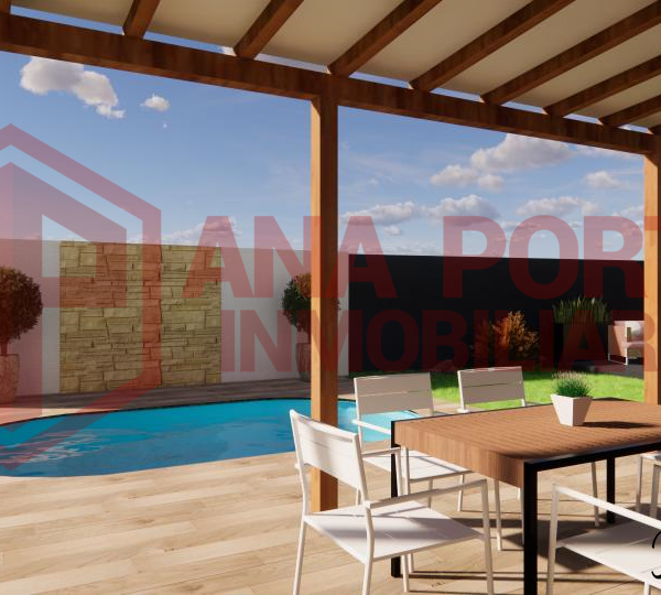 Jardín muy amplio con piscina privada, mobiliario de exterior