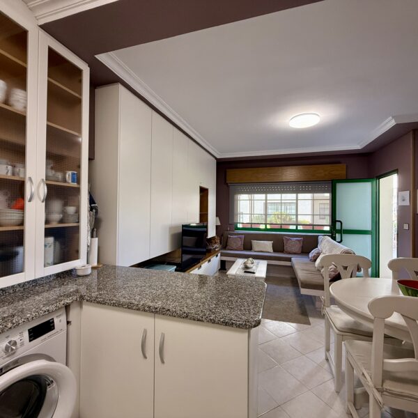 La vivienda está distribuida en una cocina abierta al salón comedor, tres dormitorios, un baño y terraza privada, además de un patio en la entrada